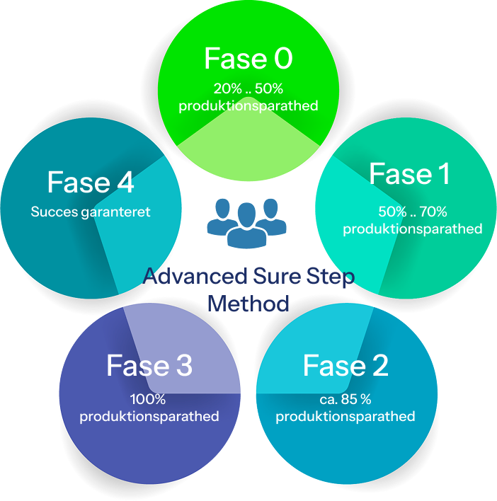 Enhver transformation kræver et solidt fundament – og netop det leverer Advanced Sure Step-metoden. Fra forventningsafstemning og datamigrering til workshops, træning i realtid og test sikrer vi, at både team og platform er fuldt forberedte. Hver fase, fra indledende planlægning til go-live, bringer jer tættere på et produktionsklart system og velforberedte brugere. Med Quantum Omega implementerer I ikke blot et system – I opbygger en solid, fremtidssikret løsning:
