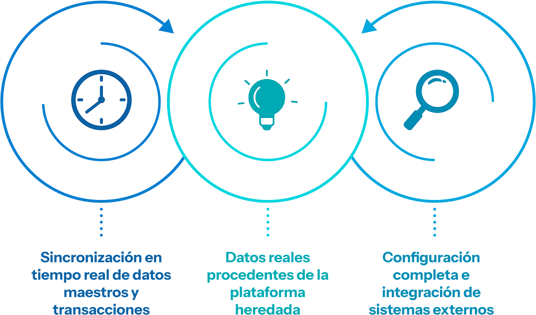 - Sincronización en tiempo real de datos maestros y transacciones